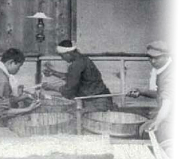 スズキ麺工の始まりは、水車を動力とした石臼で小麦を挽き小麦粉を作ることでした。当時、近隣には手延麺の生産者の創業が相次ぎ、 鴨方が手延麺の産地として大きな発展を遂げる創成期でした。創業者である鈴木弥市は、鴨方地域の手延麺の生産者に良質な小麦粉の提供を開始したのです。